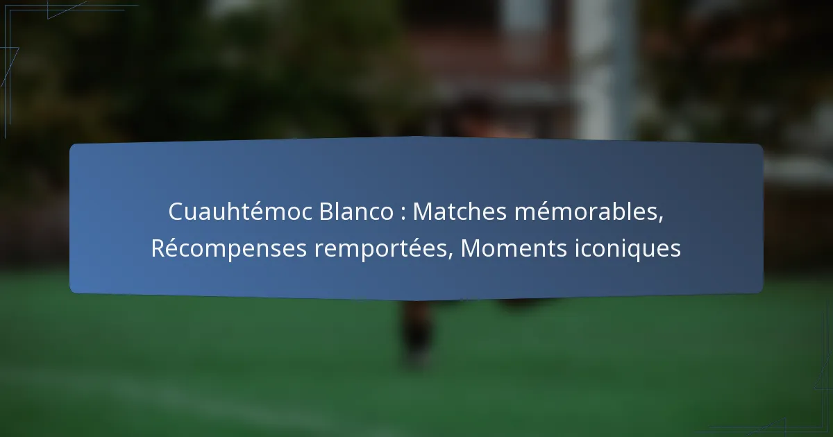 La carrière de Cuauhtémoc Blanco est marquée par plusieurs matchs inoubliables qui mettent en avant son talent, sa passion et son impact sur le jeu. Ses performances tant dans les ligues nationales que dans les tournois internationaux ont laissé une impression durable sur les fans et les joueurs.